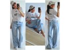 Velice pohodlné BOYFRIENDY 👌 klasická džínovina, saténová mašle lze sundat, světe modrý pásek...
