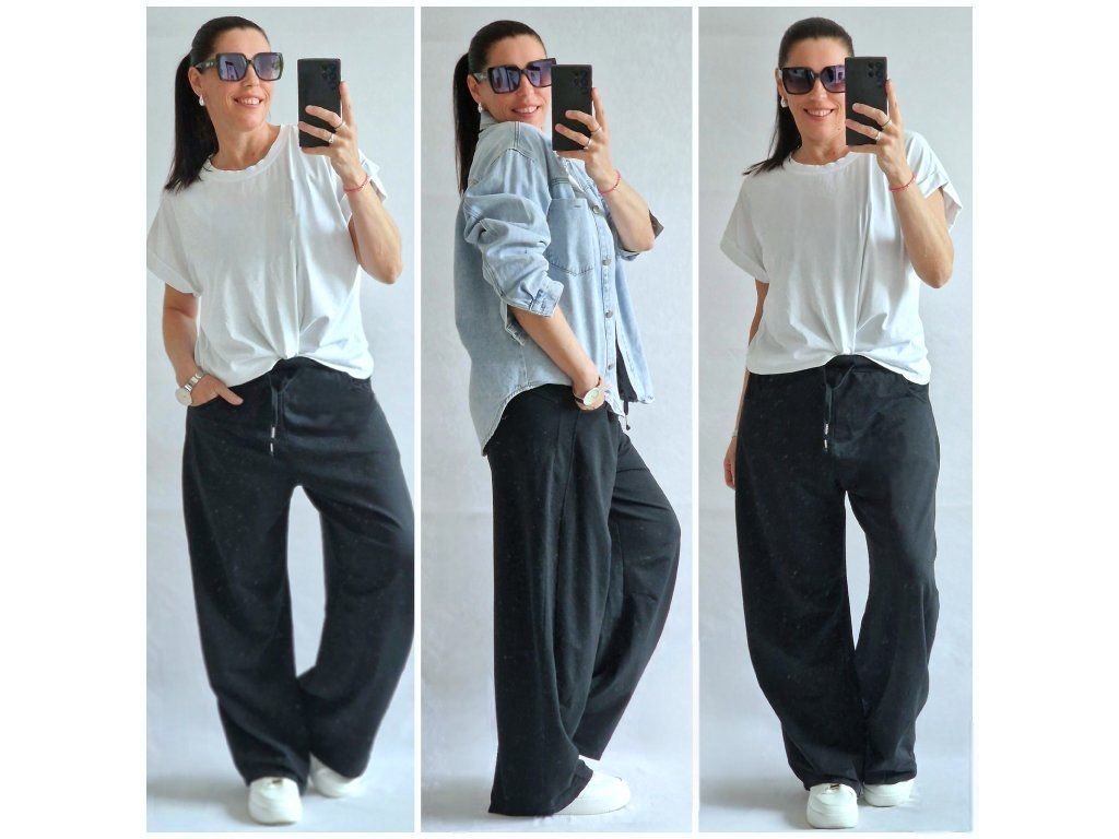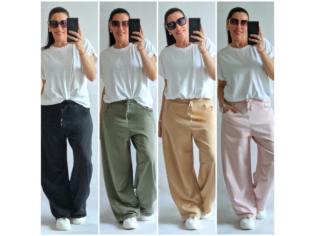 Jsou naprosto úžasné 👌 DOPORUČUJI Perfektní pohodlný střih, velice příjemné, v pase na gumu + šňůrka, kapsy... Velikost ONE odpovídá XS-S-M-L-XL, záleží jak kdo rád nosí... 🤗