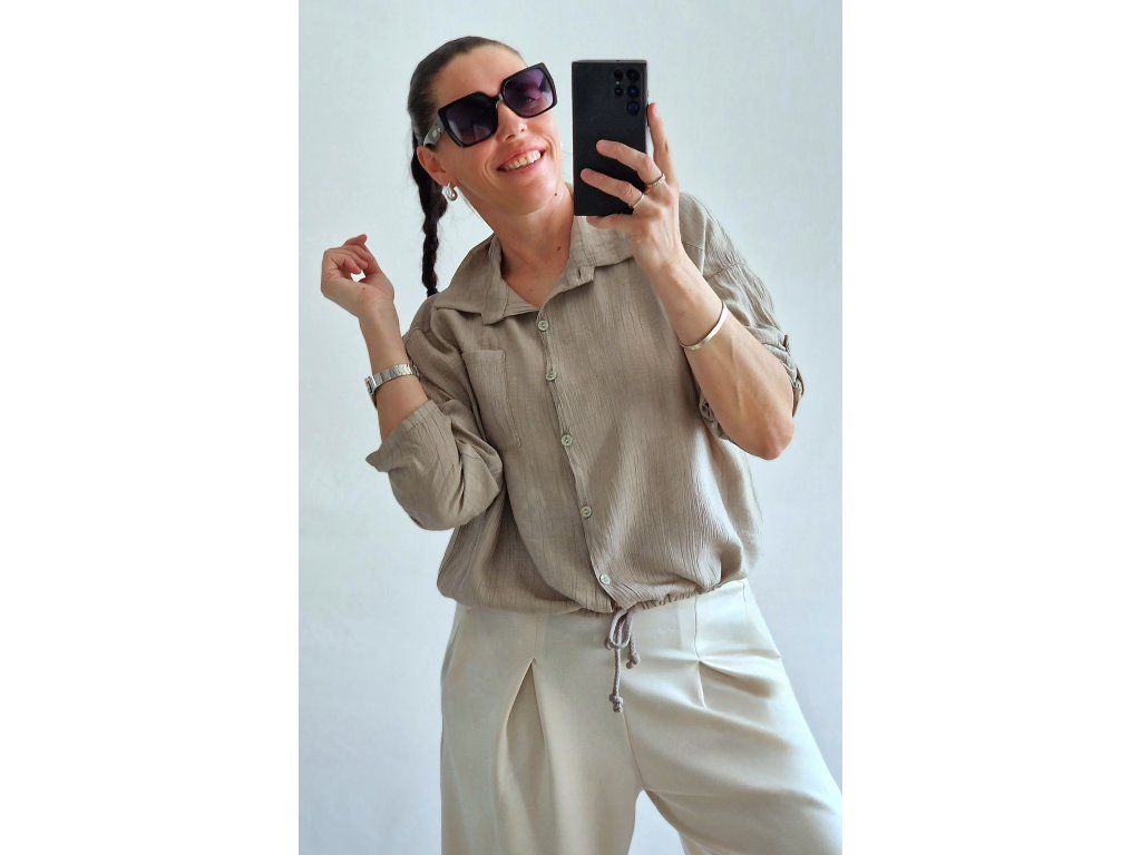 Skvělá, pohodlná a velmi příjemná 🤎 rukáv roll-up, propínací, dole šňůrka na stáhnutí 👌 Velikost ONE odpovídá XS-S-M-L-XL, záleží jak kdo rád nosí... 🤗