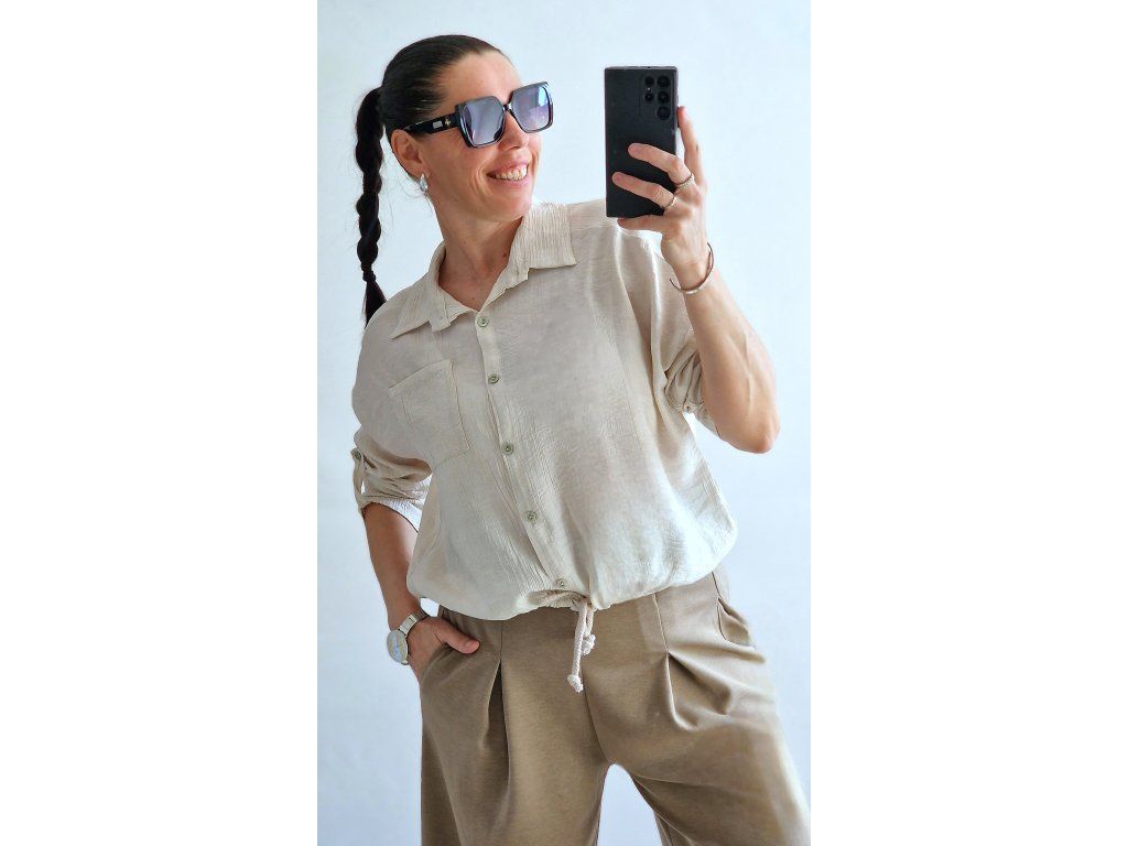 Skvělá, pohodlná a velmi příjemná 🤍 rukáv roll-up, propínací, dole šňůrka na stáhnutí 👌 Velikost ONE odpovídá XS-S-M-L-XL, záleží jak kdo rád nosí... 🤗