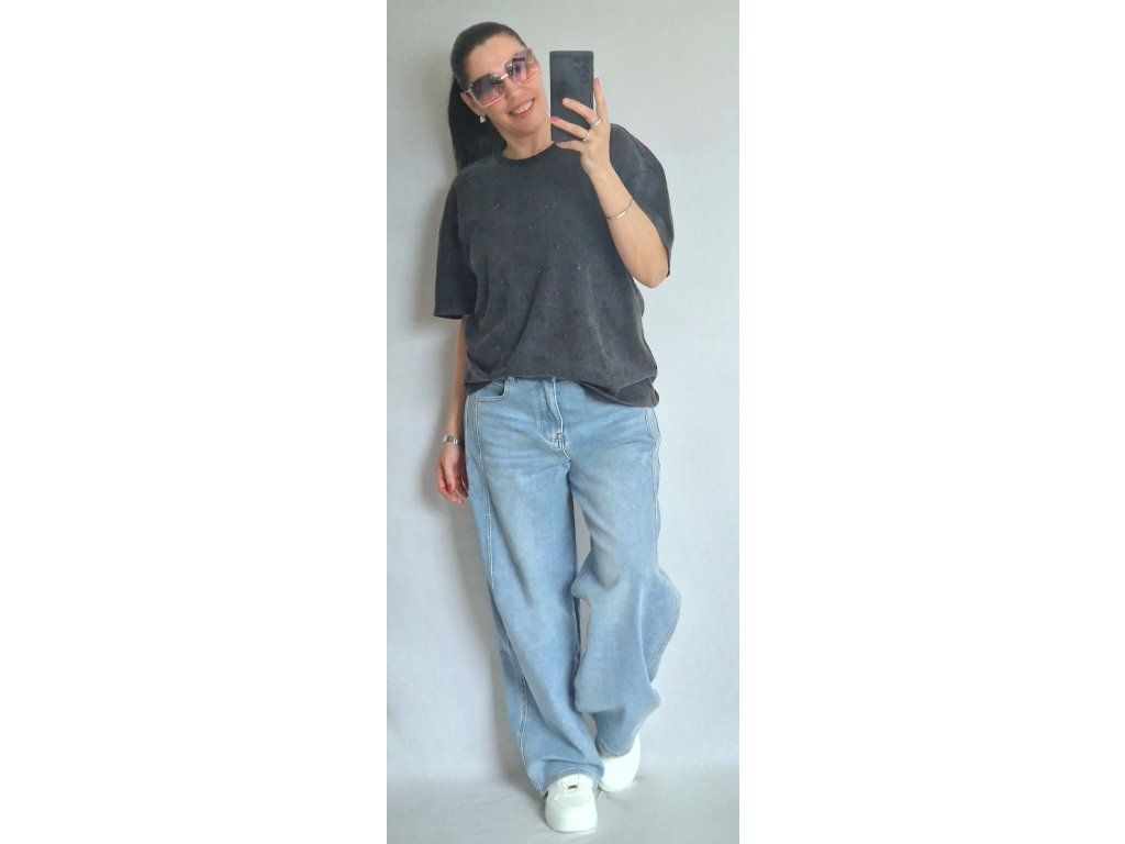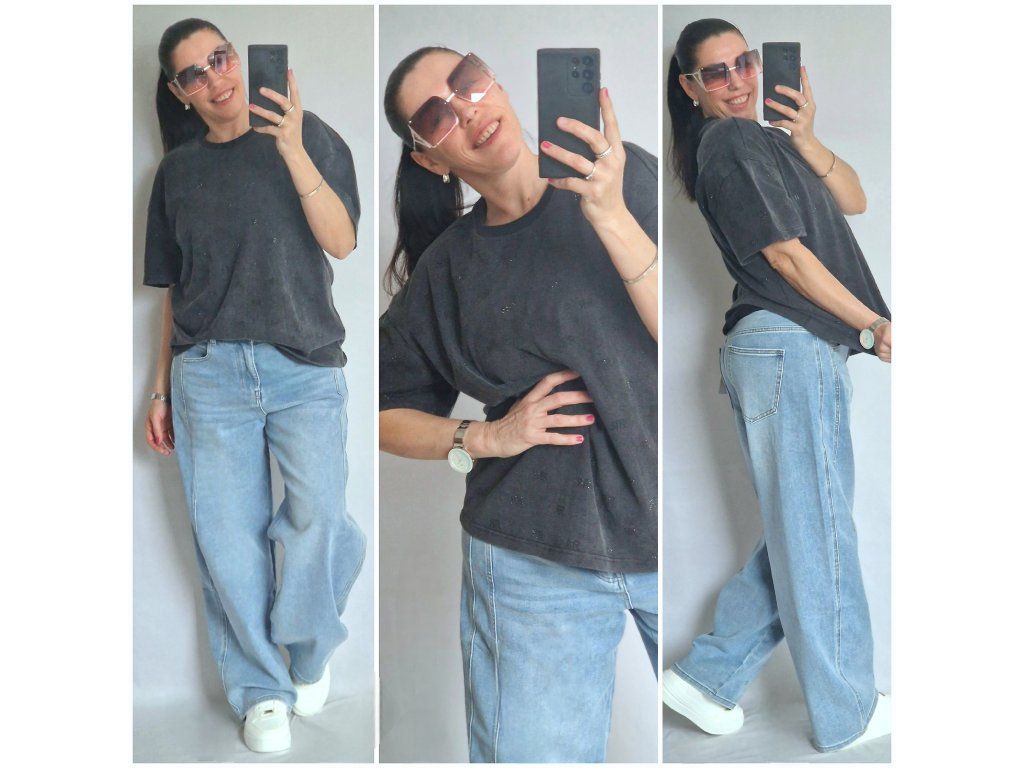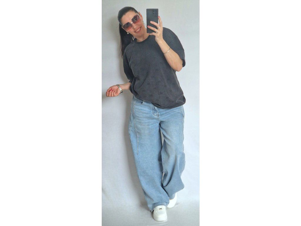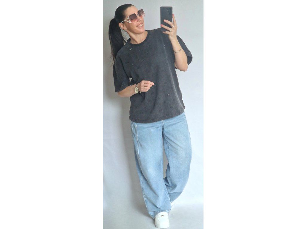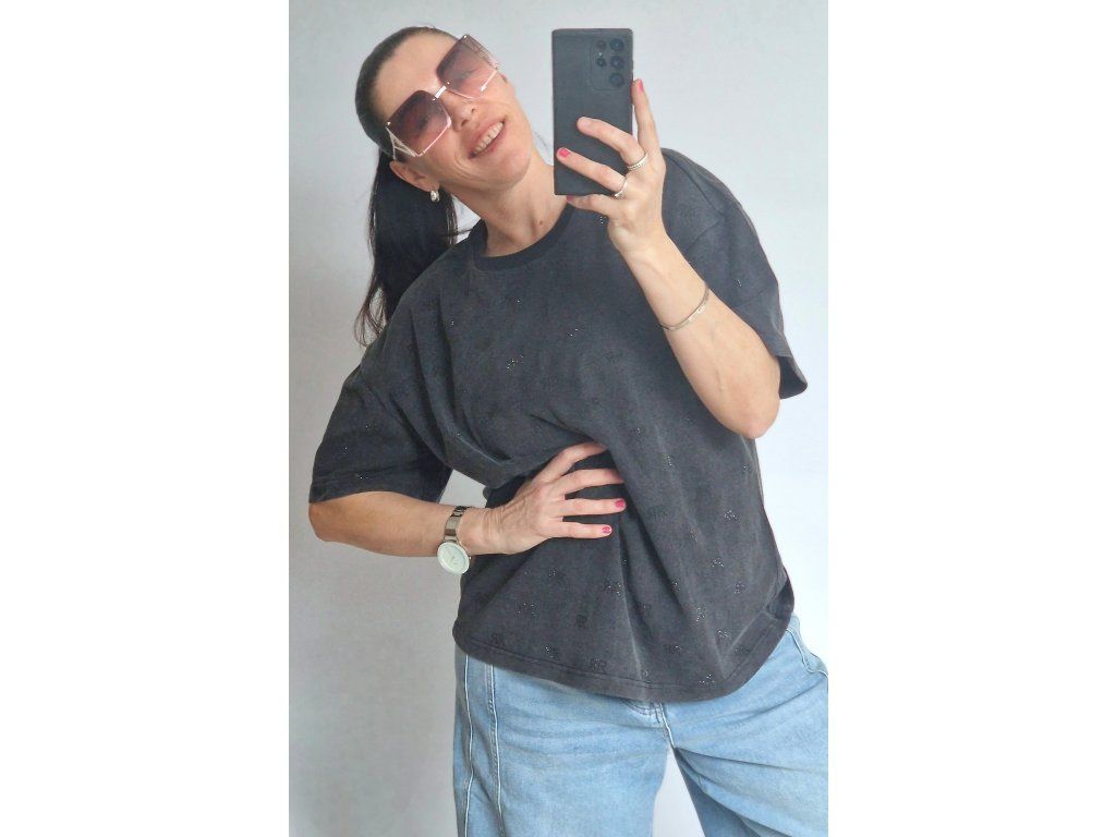 Je úžasné! Vysoká gramáž, černé kamínky RR, krásně drží tvar 👌 Velikost ONE, odpovídá S-M-L-XL, záleží jak kdo rád nosí... 🤗